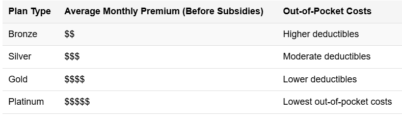 Costs vary based on age, location, income, and plan type. Here's a general breakdown: