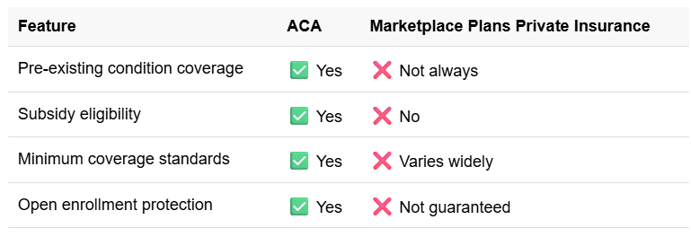 ✅ Fact: ACA plans must meet strict federal standards, including coverage of essential health services.